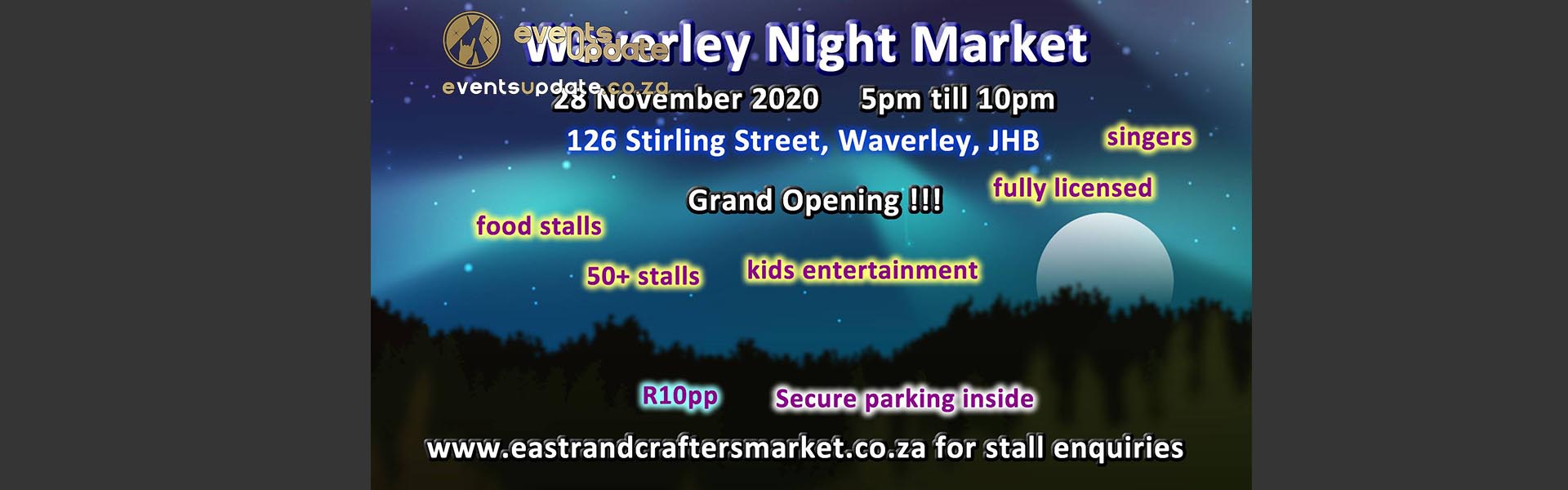 Big welcome to the Waverley Night Market which will take place at the Waverley Sports Club. This market will focus on a very unique selection of stalls, a great variety of food stalls and last but not least, entertainment for both adults and kids.